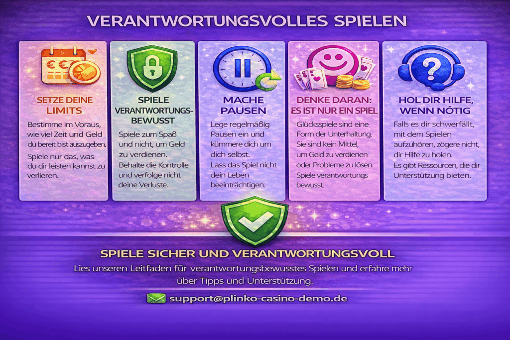 Verantwortungsvolles Spielen ist in Online-Casinos besonders wichtig, vor allem bei Spielen wie Plinko. Diese Art von Spiel zieht viele Nutzer durch ihren unterhaltsamen Charakter an und kann leicht fesseln. Das Festlegen von Zeit- und Budgetlimits hilft, die Kontrolle zu bewahren. Spieler sollten sich der Risiken stets bewusst sein. Boni zu nutzen, ohne die eigenen Grenzen zu überschreiten, ist eine sinnvolle Vorgehensweise. Ein verantwortungsvolles Verhalten ermöglicht ein angenehmes Spielerlebnis und hilft, spielbedingte Probleme zu vermeiden; Maßhalten sorgt für Spaß ohne Übermaß.